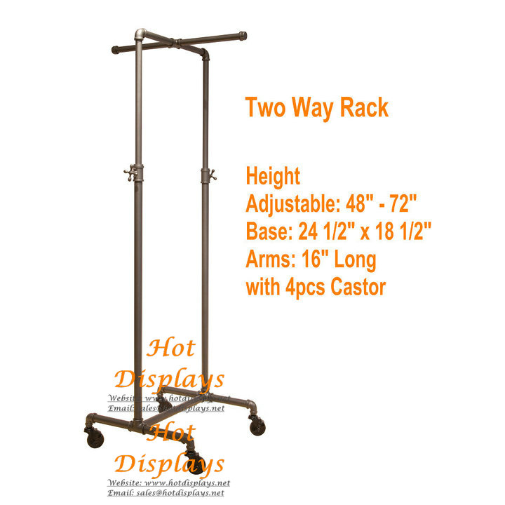 当前位置:首页 >> 产品中心 >> Store FixturesHeight Adjustable Floor Standing 1-Bar 2-Arm Industrial Waterpipe Clothes Display Rack Powder Coated Garment Rack PR207