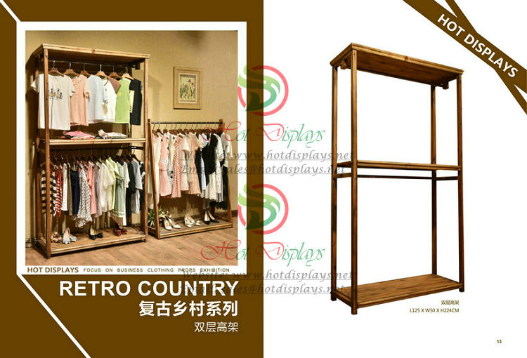 当前位置:首页 >> 产品中心 >> Store FixturesRetro Timber Floor Standing H Shape 3-Layer Clothes Rack with Shoes Display Shelves W13