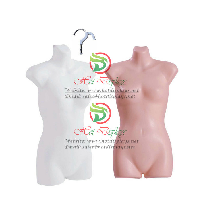 Cheap Plastic Female Mannequin Stock PP White Skin Hanging Half Vacuum Form with Chrome Hook MAF-H2-PL105