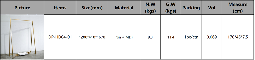 Current Position:Home >> Products >> Store FixturesFloor Standing Modern Garment Rack Single Bar Clothes Display Rack Heavy Coat Hanger with Wood Base Shoes Storage Shelf DP-HD04