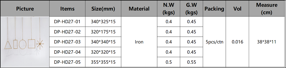 Current Position:Home >> Products >> Store FixturesFashion Golden Tubing Display Accessories Hanging Triangle Retangle Ring Shpes DP-HD27
