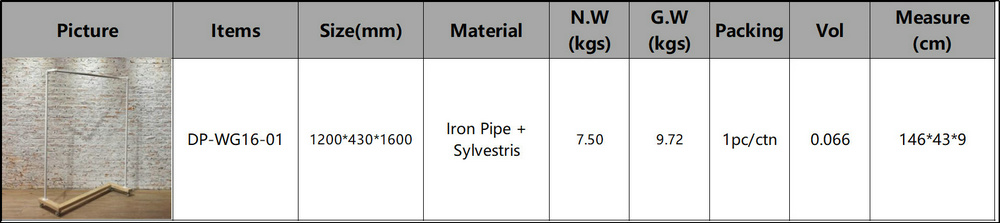 Current Position:Home >> Products >> Store FixturesFloor Standing White Industrial Waterpipe Single Bar Clothes Rack with Timber Base DP-WG16