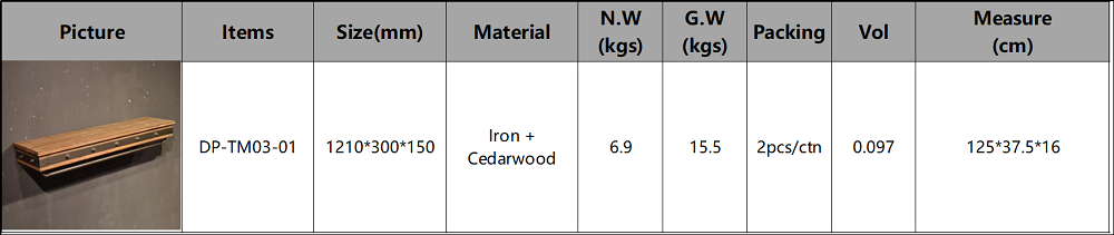 Current Position:Home >> Products >> Store FixturesWall Mounted Rustic Single Bar Cedarwood Clothes Rack Timber Shoes Display Shelf DP-TM03