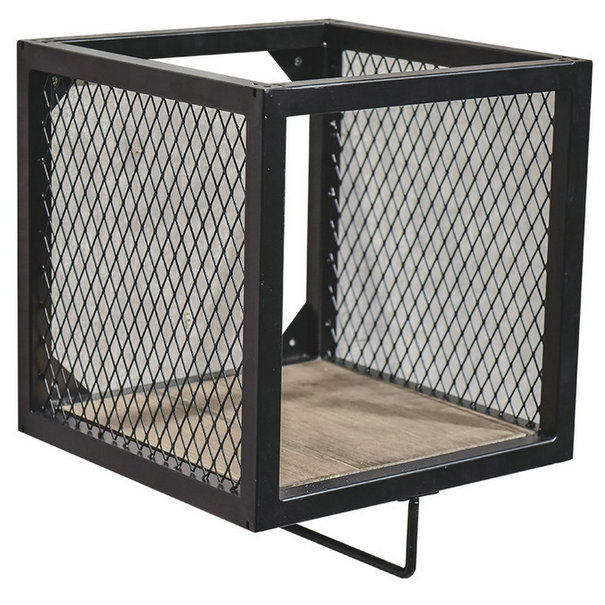Wall Mounted Iron Cubic Clothes Rack with Timber Base and Side Panel Wire Net DP-TW10