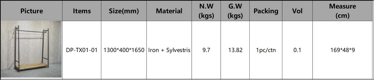 Current Position:Home >> Products >> Store FixturesH Shape Retro Floor Standing Clothes Rack with Timber Base Shoes Display Shelf DP-TX01