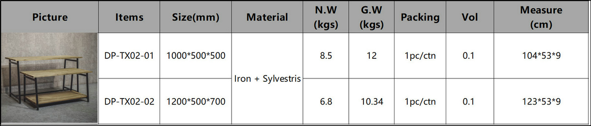 Current Position:Home >> Products >> Store FixturesRetro Nesting Tables Clothes Display Racks with Timber Shoes Storage Shelf DP-TX02