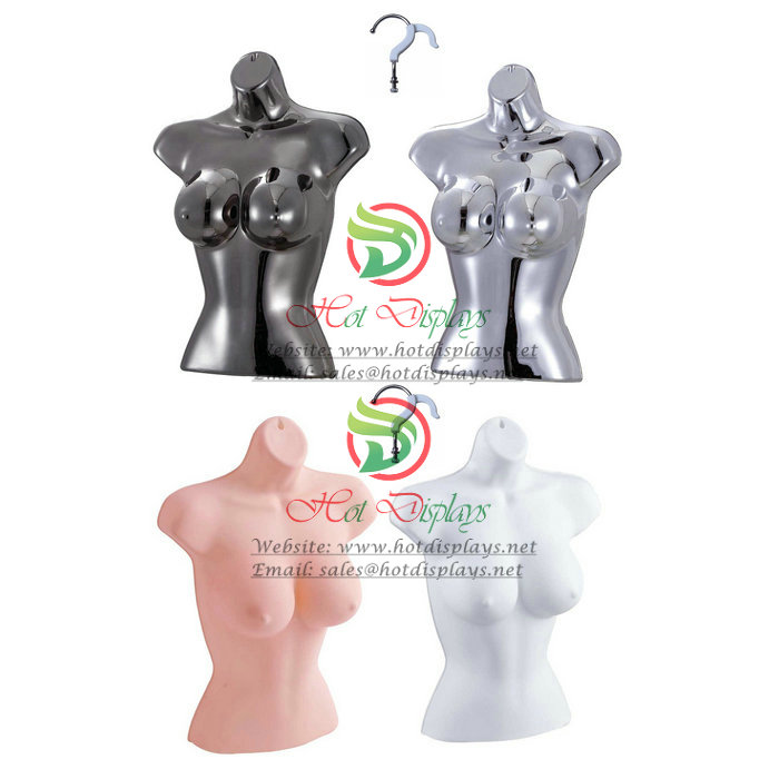 Current Position:Home >> Products >> Plastic MannequinsChrome Sexy Female Plastic Mannequin Big Breast / Bust Hanging Vacuum Form Lingerie Model with Hook MAF-H2-PL103B